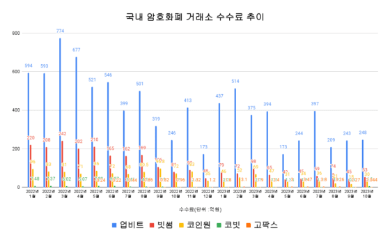 수수료 무료가 아닐 경우 5개 거래소의 수수료는 수입도 일제히 증가했을 것으로 추정된다.