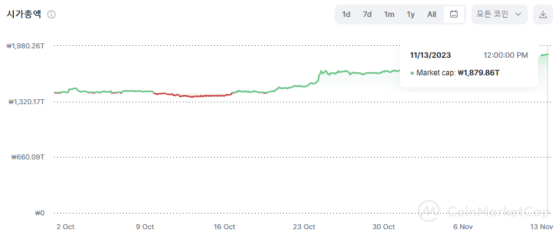 10월 업비트 거래량은 전월 대비 61.4%, 빗썸은 145.7%, 코인원은 4.9%, 코빗은 70.3%가 증가했다. 반면 고팍스의 거래량은 44.5% 감소했다.