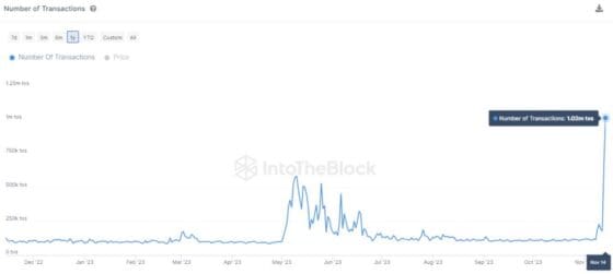 온체인 분석업체 인투더블록에 따르면, 라이트코인이 하루 만에 100만 건 이상의 트랜잭션을 기록하는 새로운 기록에 도달했다.