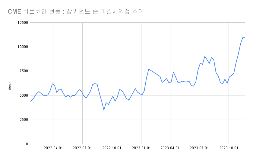 장기 투자 펀드 롱 포지션은 1만 1013건, 숏 포지션은 34건을 기록했다. 롱 포지션은 전주 대비 36건 증가, 숏 포지션은 34건 증가했다. 장기 펀드가 3주 연속 숏포지션 0건을 기록한 뒤 일부 숏 포지션을 확보했다.