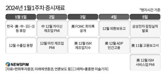 1일 금융투자업계에 따르면 오는 3일(현지 시각) 12월 연방공개시장위원회(FOMC) 회의록이 공개될 예정이다. 작년 말과 마찬가지로 금리 인하 여부가 최대 관심사가 될 전망이다. 이 밖에도 ▲12월 수출입 동향(1일) ▲미국 12월 ISM 제조업지수 ▲12월 외환보유고(4일) ▲미국 11월 고용보고서(5일) 등 경제 주요 지표들의 발표가 예정돼 있다.