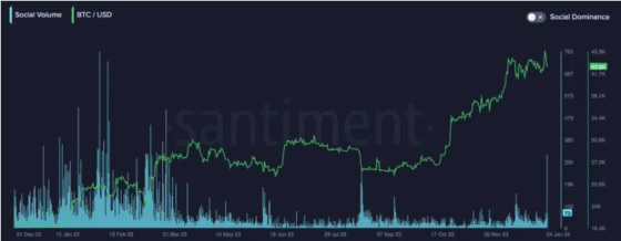 4일(현지시간) 코인데스크에 따르면 산티멘트가 추적하는 소셜미디어 플랫폼에서의 ‘바이 더 딥(Buy The Dip)’ 언급 횟수는 323으로 급증, 2022년 3월 25일 이후 최고를 기록했다. ‘바이 더 딥’ 언급은 전날 비트코인이 몇 시간만에 4만1000 달러 아래로 급락한 것에 맞춰 급증했다.