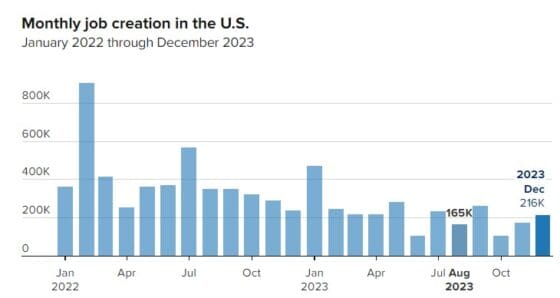 비농업 부문 고용은 11월에 예상치보다 많은 19만9000개 증가에 이어 12월에는 21만개를 넘어섰다.