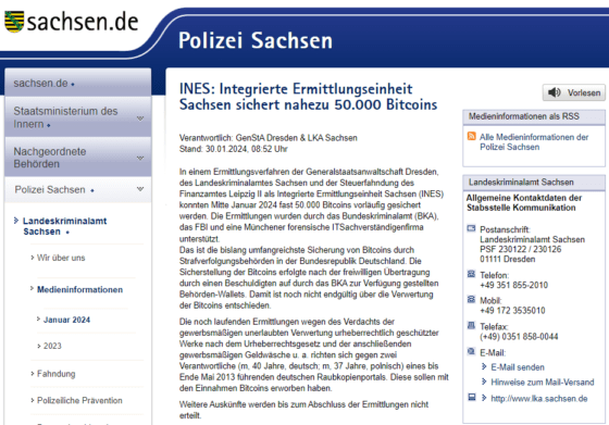 경찰은 두 명의 혐의자 가운데 한 사람이 자발적으로 비트코인을 연방범죄경찰국(BKA)에 전송했다고 밝혔다.
