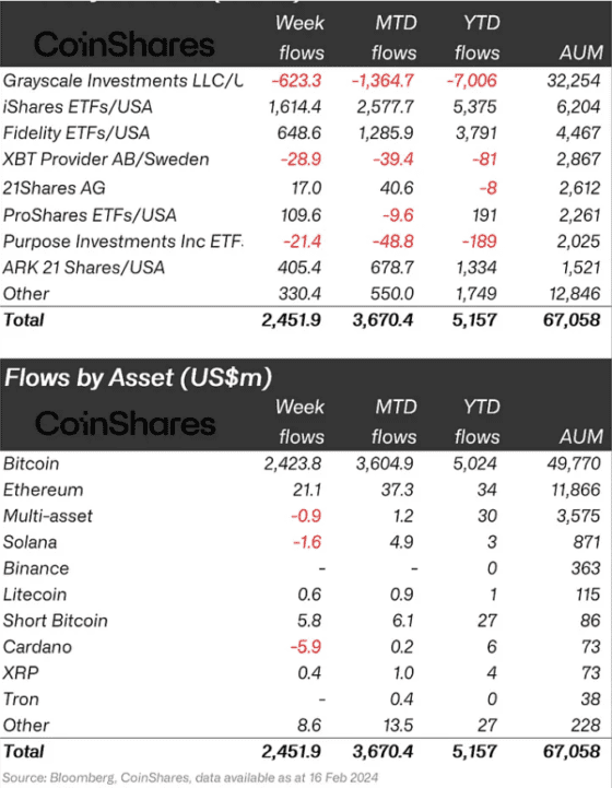 암호화폐 펀드로의 계속되는 자금 유입과 최근 디지털자산 가격 상승이 맞물려 디지털자산 펀드의 총운용자산(AUM)은 670억5800만 달러로 2021년 12월 이후 최고로 집계됐다.