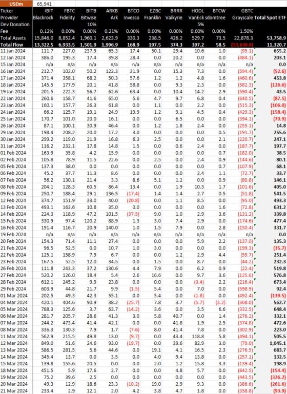 비트코인의 장기 전망이 여전히 강력한 데도 불구하고 노보그라츠가 비트코인의 사상 최고가 회복에 다소 시간이 걸릴 것으로 내다본 것은 비트코인 현물 ETF로부터의 자금 유출이 지속되고 있기 때문이다.