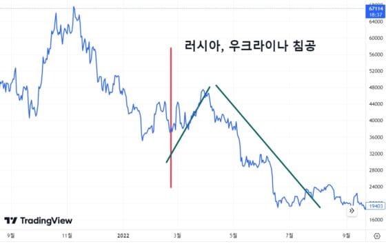 우크라이나 전쟁 당시에도 등락을 거듭하다가 “비트코인이 전쟁 중 가치를 보존할 수 있는 유일한 수단” 이라는 인식이 확산하면서 비트코인 가격이 급등한 바 있다.