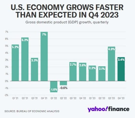 이번 주에 예정된 미국 1분기 GDP(국내총생산) 예상치도 주목할 지표다. 경제학자들은 미국 경제가 1분기에 연율 2.5% 성장할 것으로 예상하고 있는데, 이는 2023년 3분기, 4분기에 기록한 4.9%, 3.4%보다 낮은 수준이다.