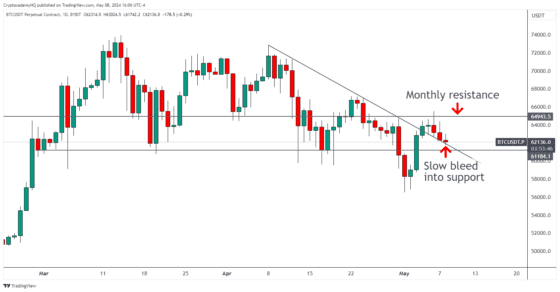 그는 이어 황소들은 6만1000 달러를 유지해야 하며 6만5000 달러가 월간 저항선이라고 밝혔다. 비트코인이 6만1000 달러를 방어하지 못하면 추가 하락 위험이 있고 반대로 본격 회복을 위해서는 6만5000 달러를 돌파해야 한다는 의미다.