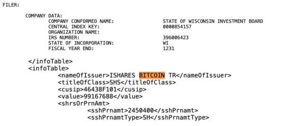 위스콘신주 투자위원회의 IBIT 보유 사실은 미국 증권거래위원회(SEC)에 제출한 분기별 13F 보고서를 통해 드러났다.
