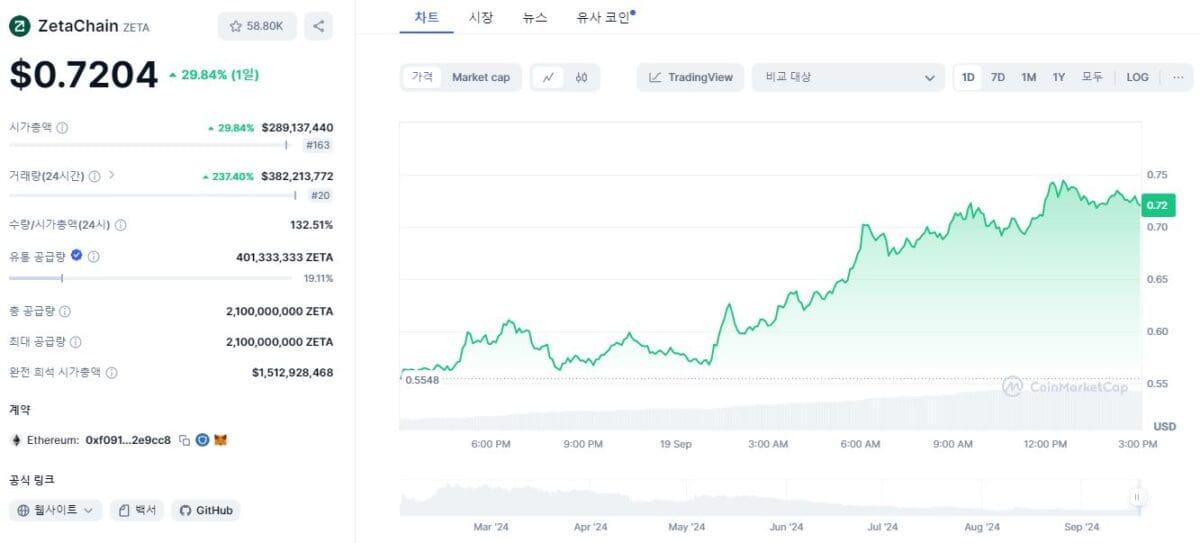 # 제타체인, 코인베이스 상장에 29% 급등…범용앱 ‘주목’