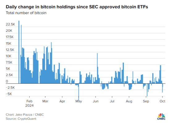 니담의 암호화폐 분석가 존 토다로는 CNBC에 “비트코인의 전체 시가총액은 이제 1조 2천억 달러로 매우 크며 상당한 유동성이 있다”면서 “매수량이 많지만 매도량도 많다”고 말했다. 그는 “비트코인 가격을 크게 움직이려면 주간 기준으로 상당한 매수 수요가 필요하다”면서 “비트코인의 총 거래량은 하루에 수백억 달러에 달하지만 ETF 거래량은 수억 달러 수준”이라고 덧붙였다.
