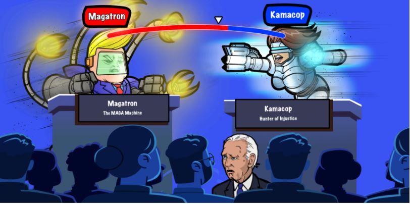 프리덤 파이터스는 트럼프를 패러디한 ‘마가트론(MAGATRON)’과 카멀라 해리스를 풍자한 ‘카마캅9000(KAMACOP9000)’이라는 캐릭터를 앞세워 정치적 상황을 유머러스하게 재현한다.