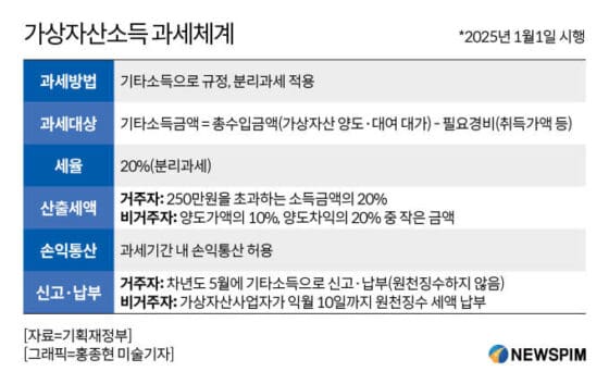 [세종=뉴스핌] 이정아 기자 = 금융투자소득세가 폐지되면서 가상자산과세도 유예해야 한다는 목소리가 커지고 있다. 금융자산에 대한 세금은 물리지 않고, 가상자산만 과세한다는 것은 형평성에 맞지 않다는 지적이다.