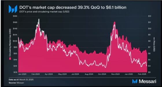 [블록미디어 이정화 기자] 2025년 1분기 폴카닷(DOT) 생태계의 거래 활동이 크게 줄어든 것으로 나타났다.