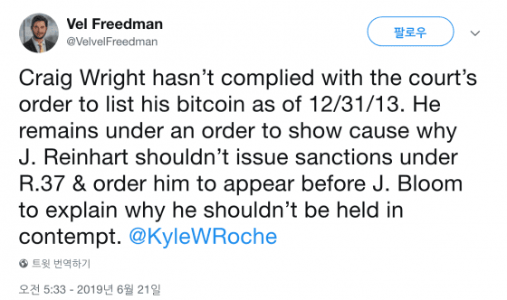 [블록미디어 신지은 앵커] 비트코인 절도 사건에 연루된 비트코인SV의 크레이그 라이트가 법원이 명령한 비트코인 보유량 공개를 따르지 않았다는 보도가 나왔다.