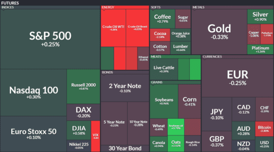 [이 시각 글로벌 선물] 유가 4% 급등에 에너지 강세…美 증시 혼조, 달러는 강세
